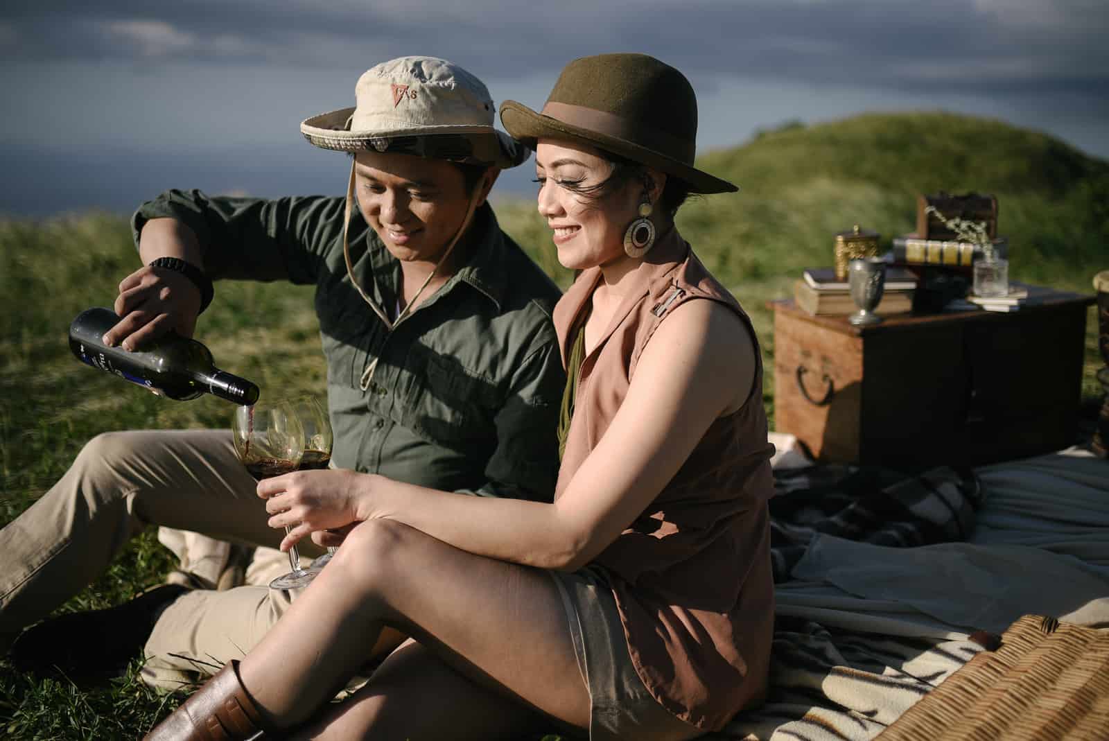 Mt.Gulugod-Baboy, a popular hiking destination, is a sea and summit climb. After the long hike, one can take a short side trip at Sumbrero Island. It was the perfect venue to capture their love for mountain climbing. Aside from a hiking theme, they chose to with two other interesting ones that fit their locations perfectly. A Safari and a 1920’s pin up look peg from the movie, The Notebook, for their theme.