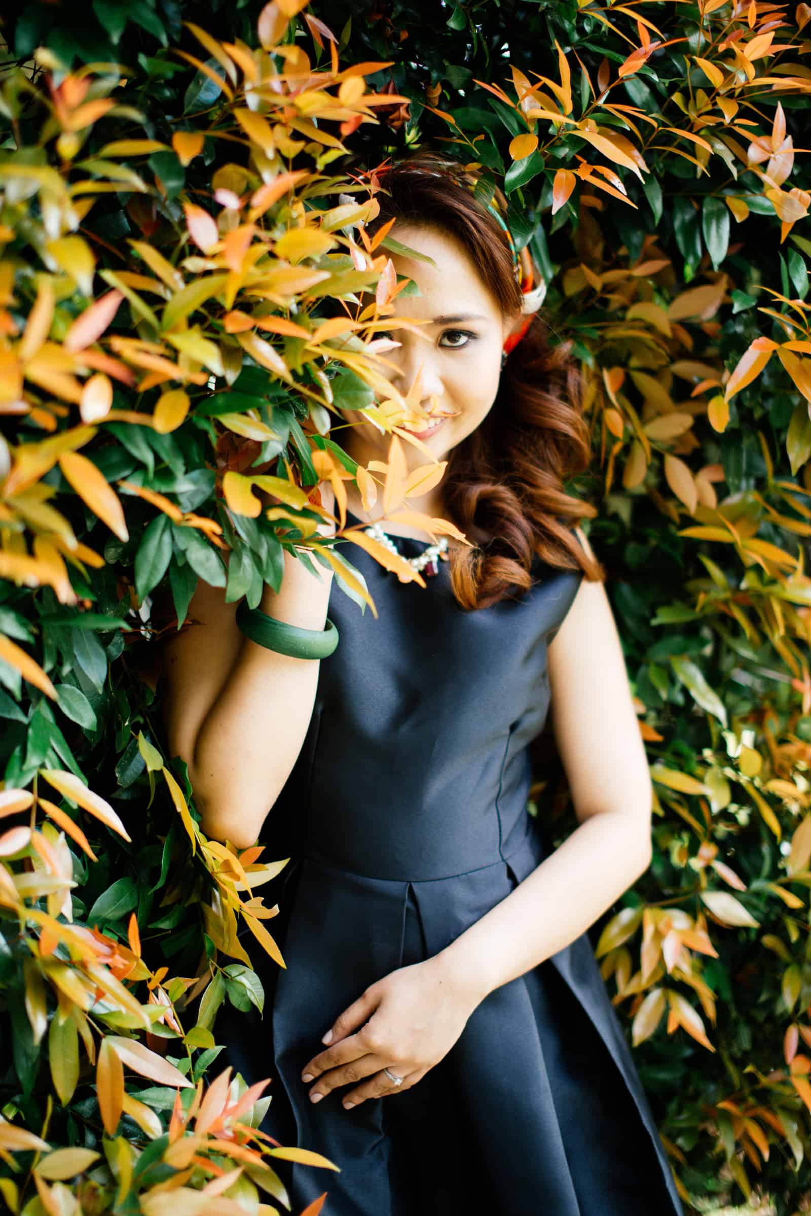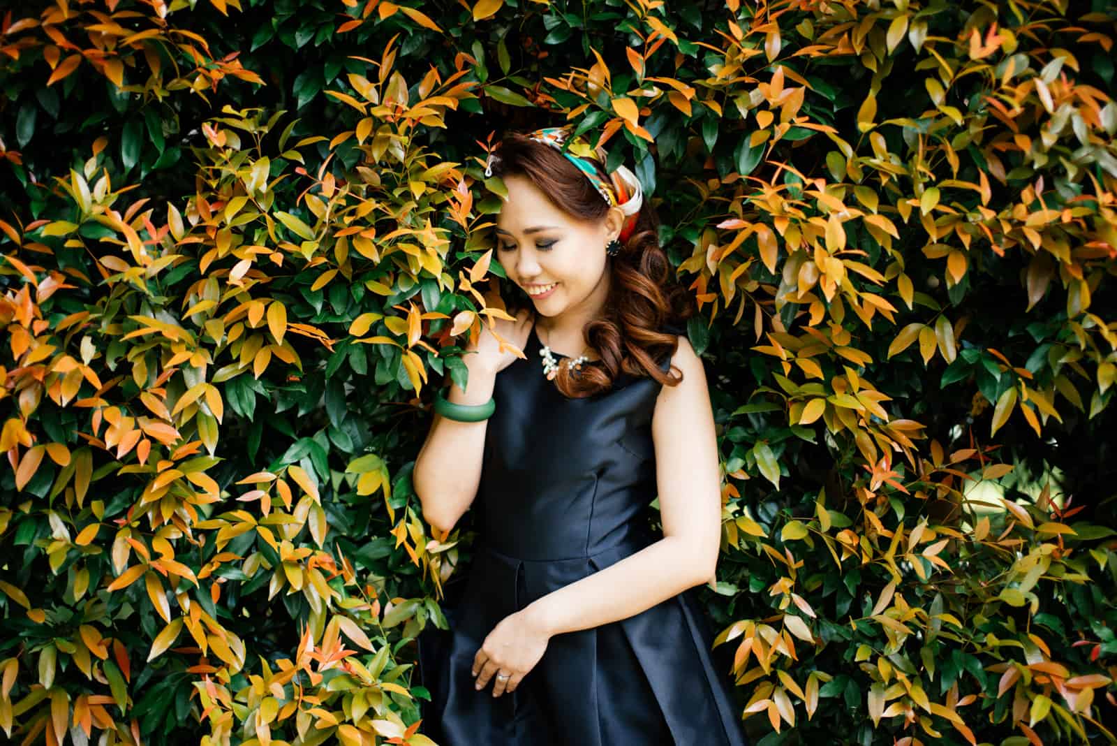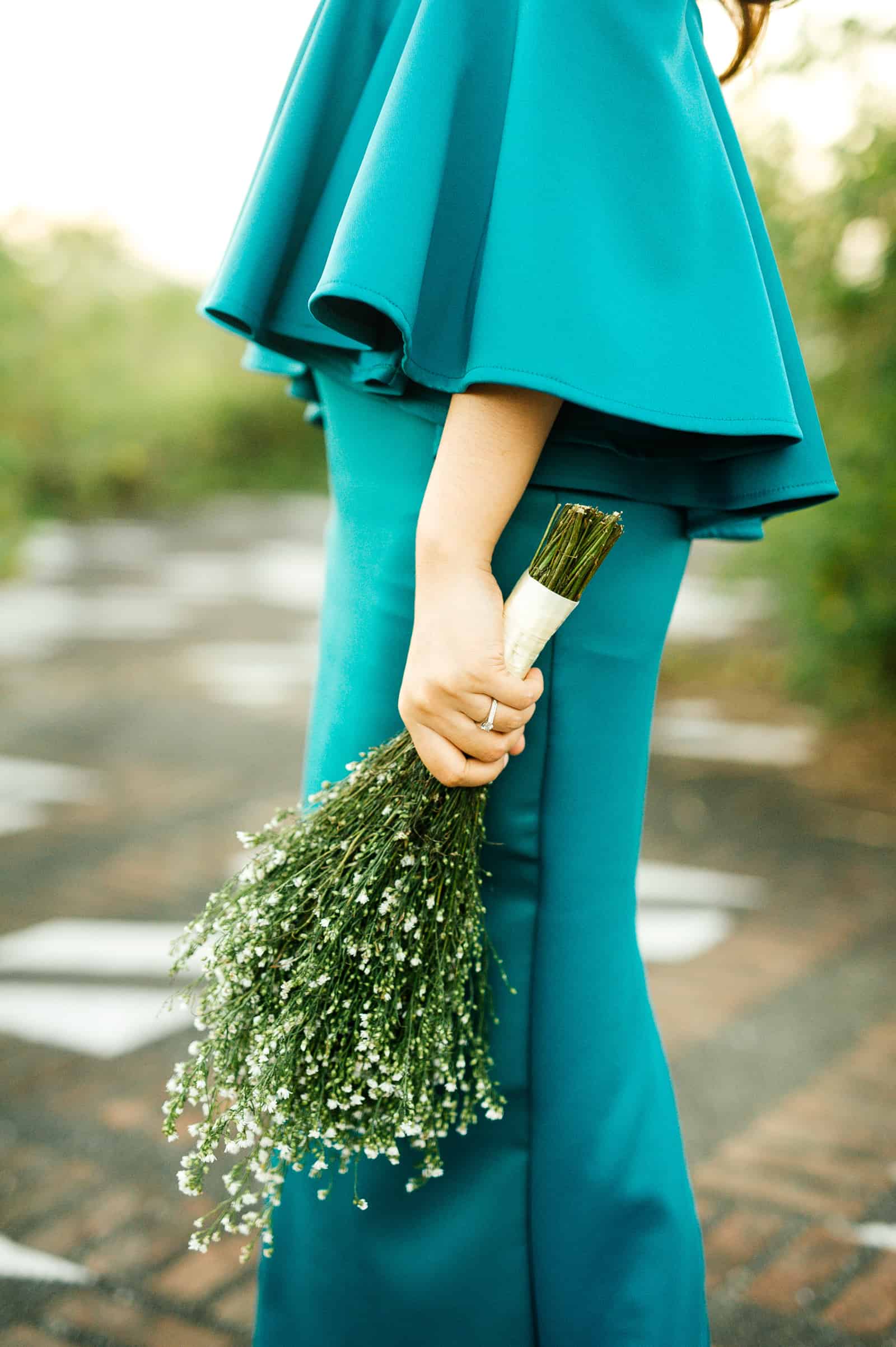 “Inspiration not imitation. If you think that one bride looked amazing in her red, flowy gown, make yours a little different. Why not make it royal blue– or in my case–emerald green. Girly in black. Don’t be afraid to go outside your usual favorite color. Something that your friends will not expect you to wear but will look great on you.”