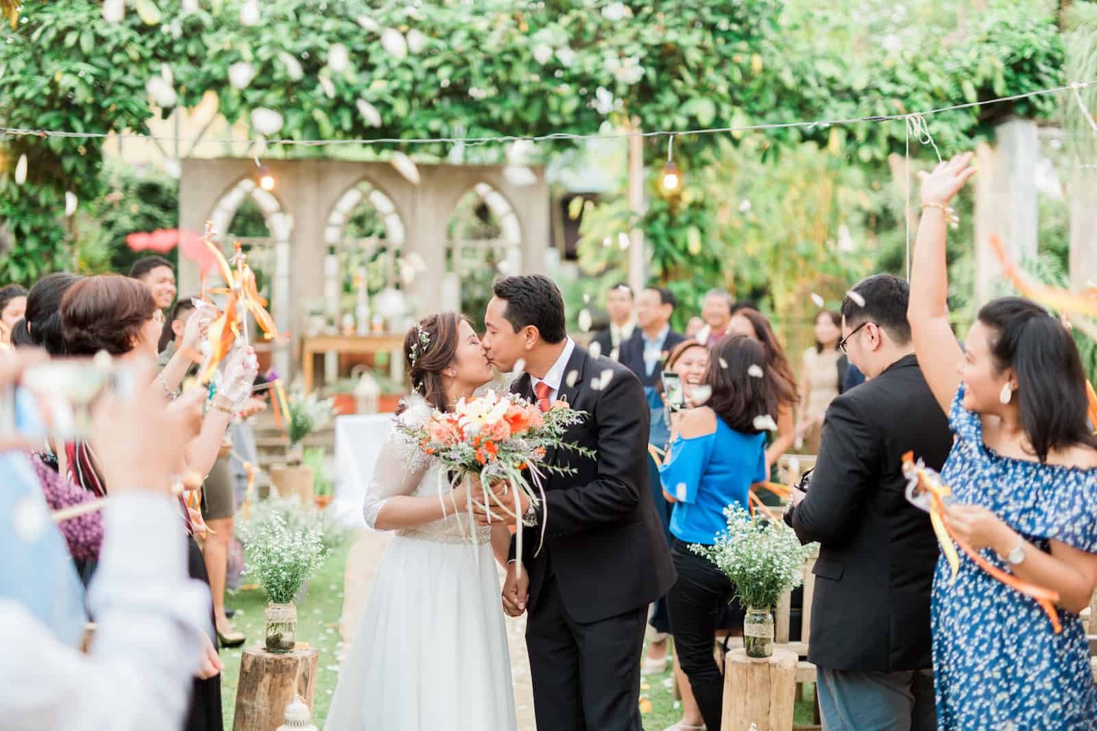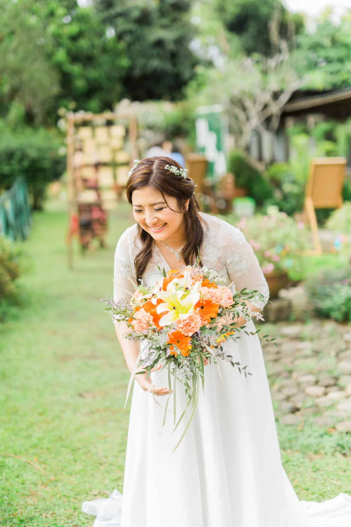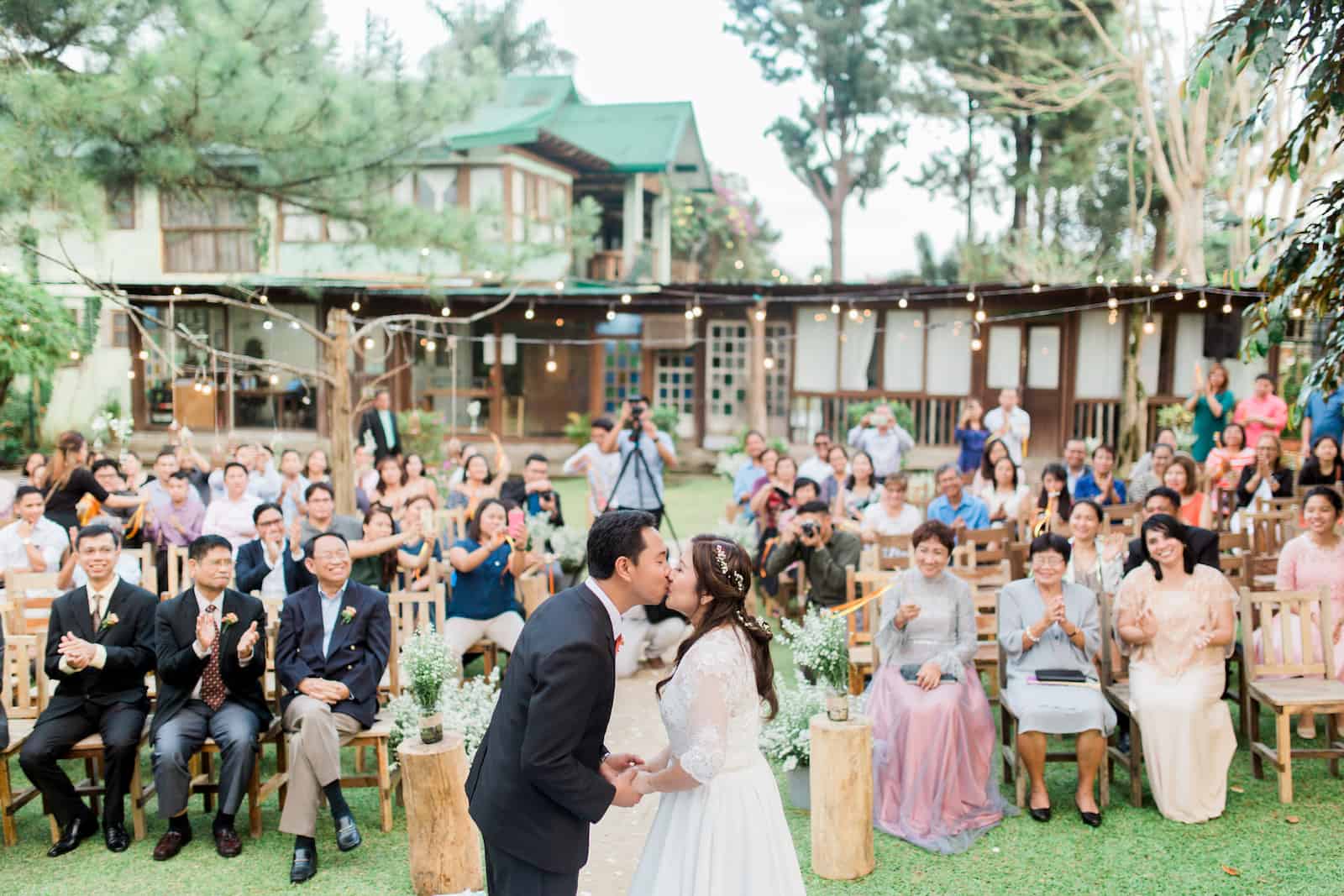 “Another Top Knotter moment for us is, one hour before the start of the ceremony, it rained. The ceremony and reception were both set up outdoors, so the Casa San Pablo staff had to bring in the tables and ornaments, and take them out again afterwards to re-do the whole set-up when the rain stopped. It happened a couple of times until heavy rain poured steadily. We were already contemplating moving the ceremony and reception indoors. But we held on to our faith that God would answer our prayers and give us a beautiful wedding. At around 3:00PM, the rain stopped, the sun came out, and He gave us cool, calm, and perfect weather.”