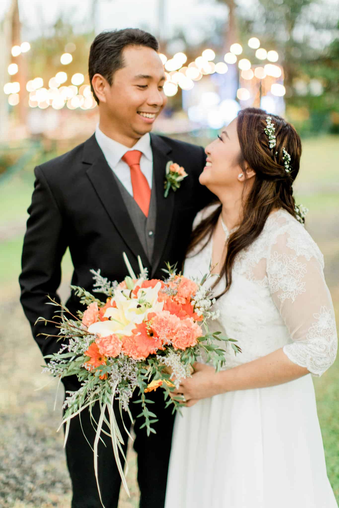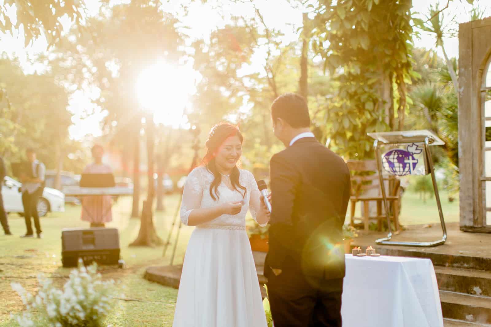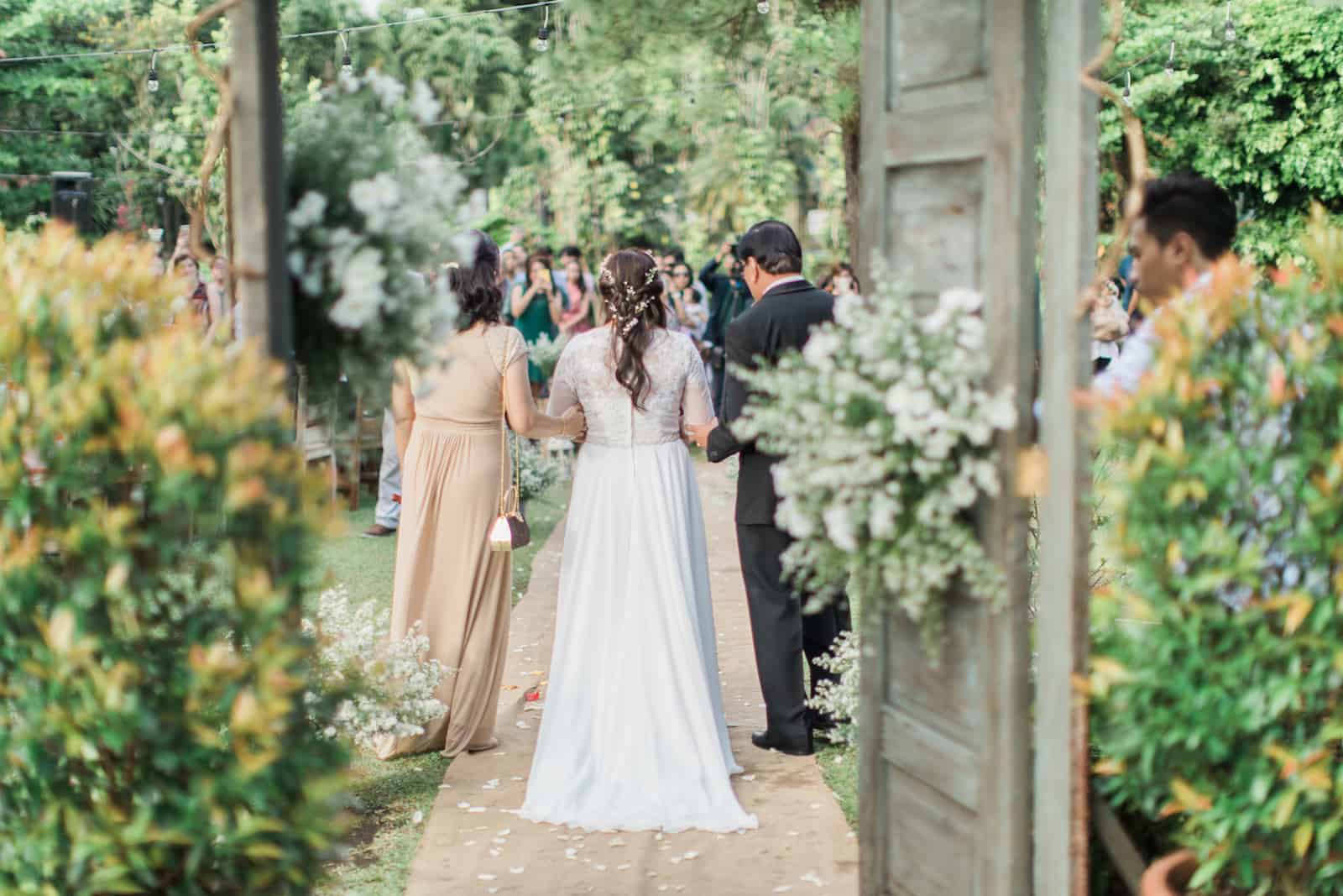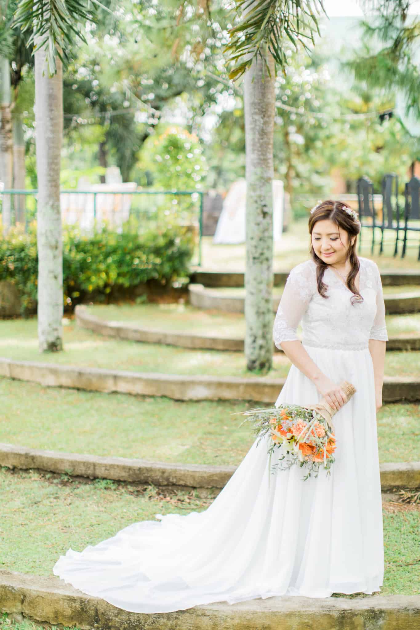 “Our vision was to have a backyard wedding where our guests can feel at home in the presence of family and friends. We didn’t want our guests to bother with what to wear or the roles they have to play; the goal was to let them come and celebrate with us and have a good time. We opted for soft lighting using string lamps to match the rustic vibe of Casa San Pablo and the cool February weather. The set up was no-frills, even the dinner program was light and straight to the point. Live acoustic music at the reception added to the soothing ambiance.”