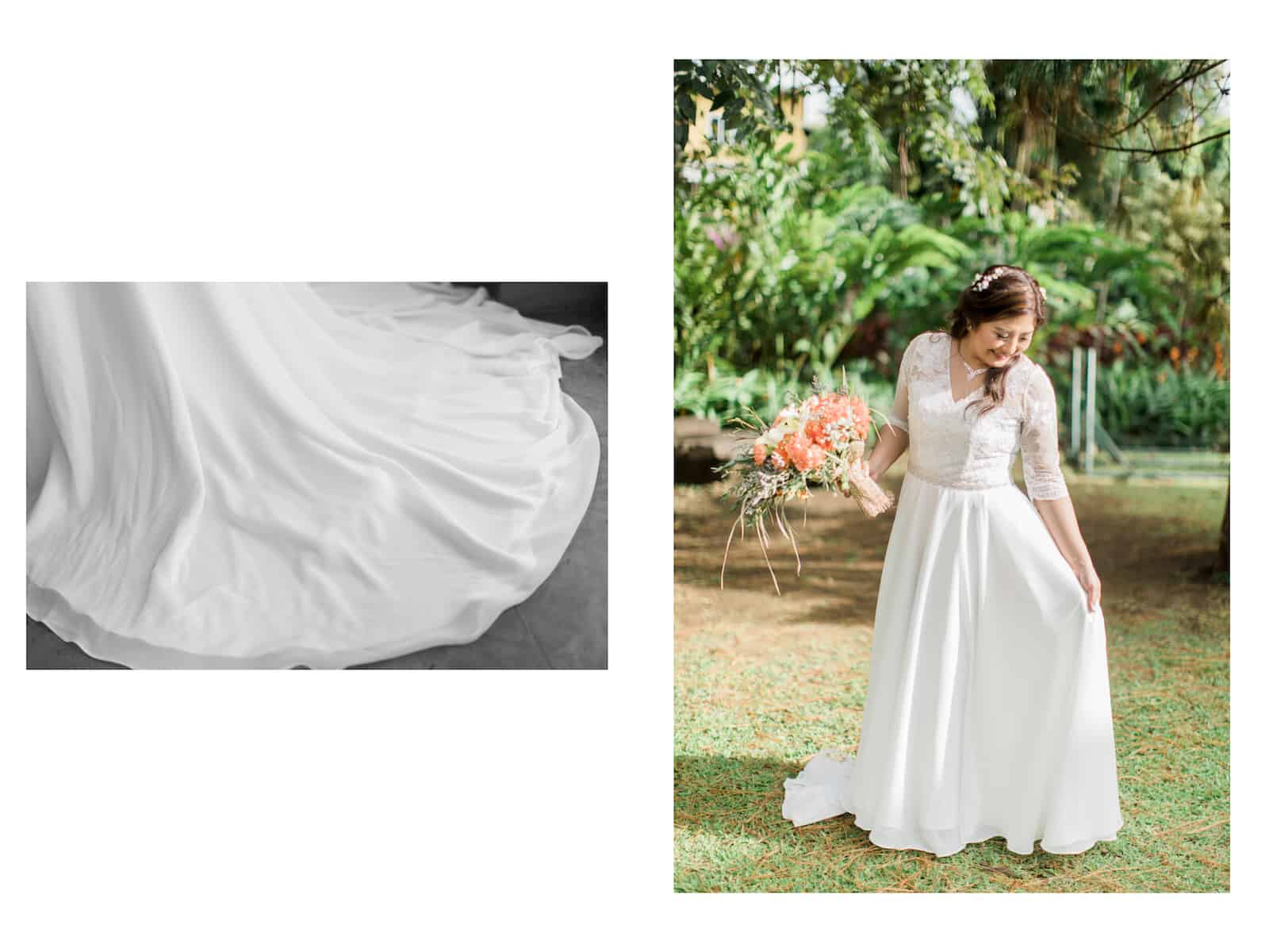 “Less than two weeks before the wedding, my mother-in-law referred me to Jun Marcelino, an established gown maker in Taguig. They gave us a shopping list and we went to Carolina’s in Megamall to buy the needed fabric and accessories. They were able to make the gown I wanted and we got it on the morning prior to the wedding. All’s well that end’s well.”