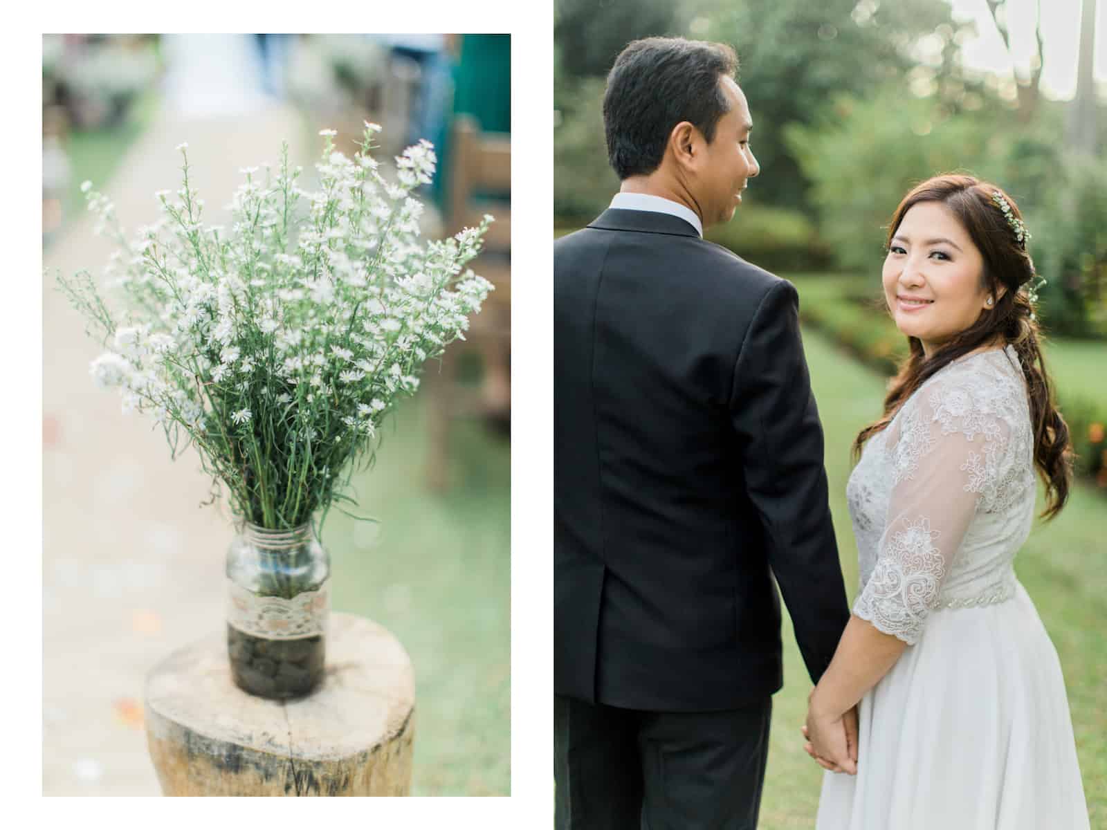“Marc and I met in UPLB. We were classmates during our first year in college. I found out through common friends that he liked me but he only started courting me after three years, and we became a couple after another. We’ve been together since then. We had our simple civil wedding in 2016, at Las Pinas RTC, on our 12th anniversary. But because we wanted to honor God through our marriage, and celebrate with friends who were with us from the start of our relationship, we decided to wed in church a year later, February 18, 2017.”