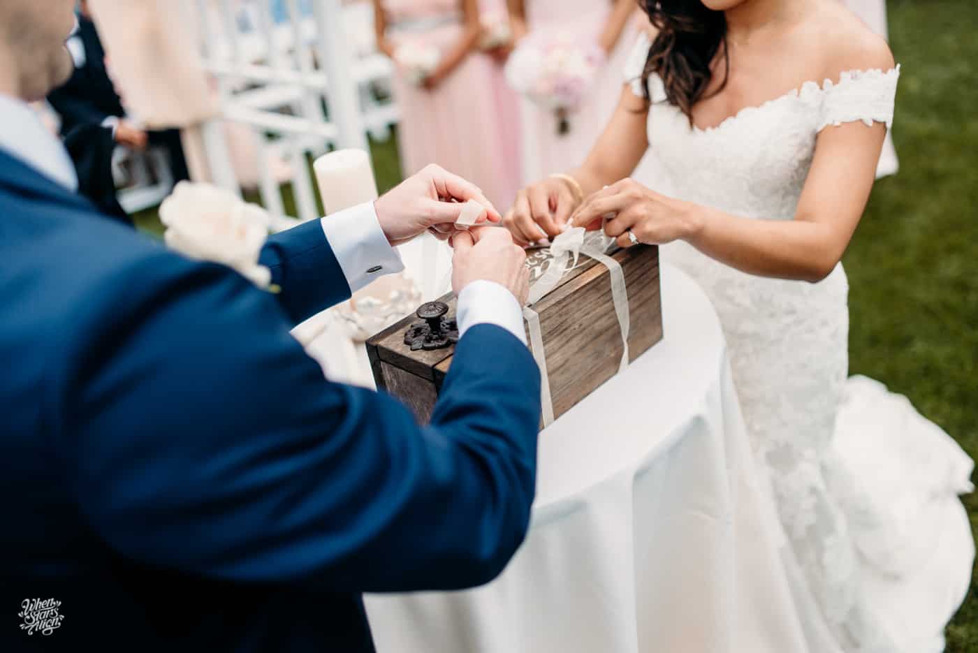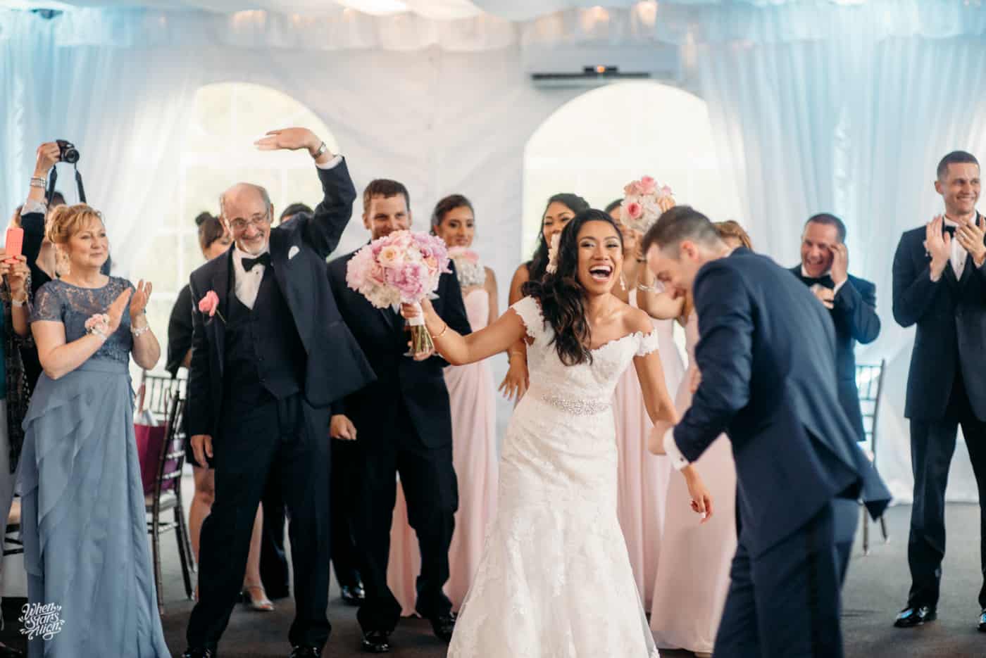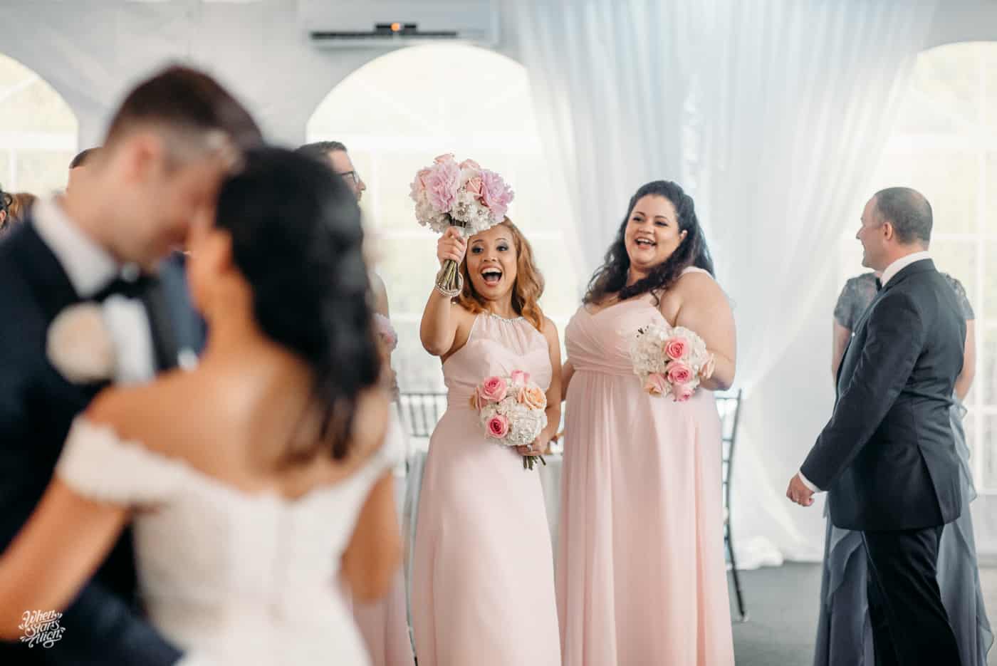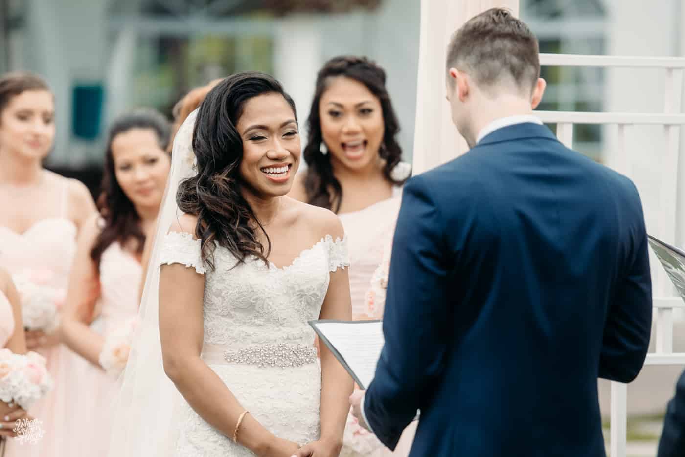 Now, we see their garden wedding as captured by When Stars Align Photo. You can just see the giddy excitement & joy in Zach & Diana’s smiles as well as how happy friends, family & loved ones are for the couple.