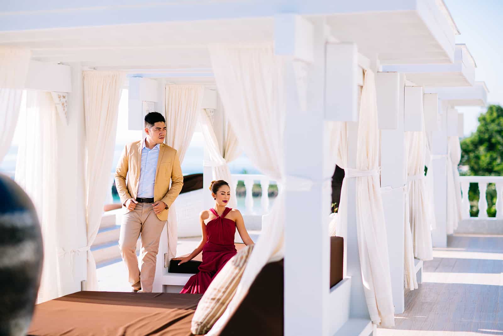 “We knew right and there that it would be the perfect spot for our prenup session considering its beautiful scenery, romantic ambience and luxurious feel. The luxurious and exclusive island also reveals what theme we wanted for our wedding…. posh and elegant!”