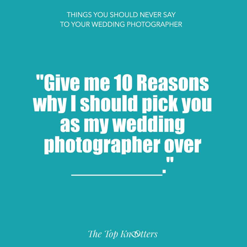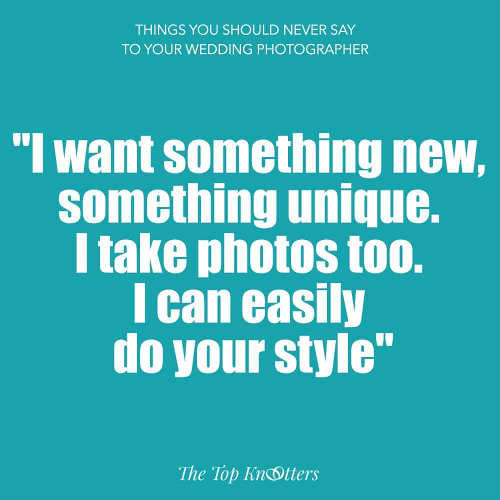 Okay wait — this might make your photographer think, “Does this mean I’m a second option? Uhhm, thanks a lot for the vote of confidence?”. You hired them for a reason; you saw something in their work. Trust them and work with them to come up with captured memories of a lifetime! No need to let them know they aren’t your first choice.