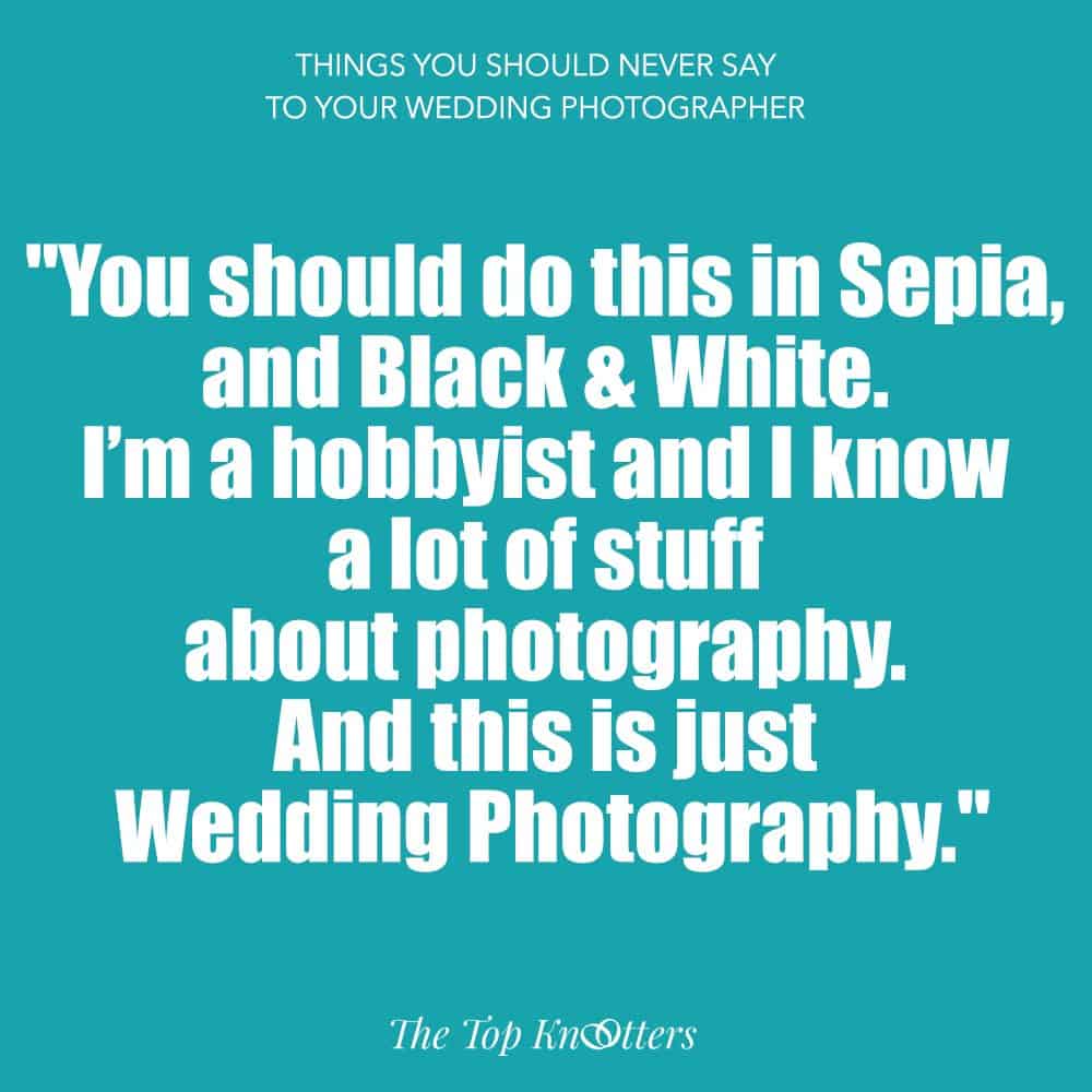 Here’s a list of things you should never say to a photographer:
