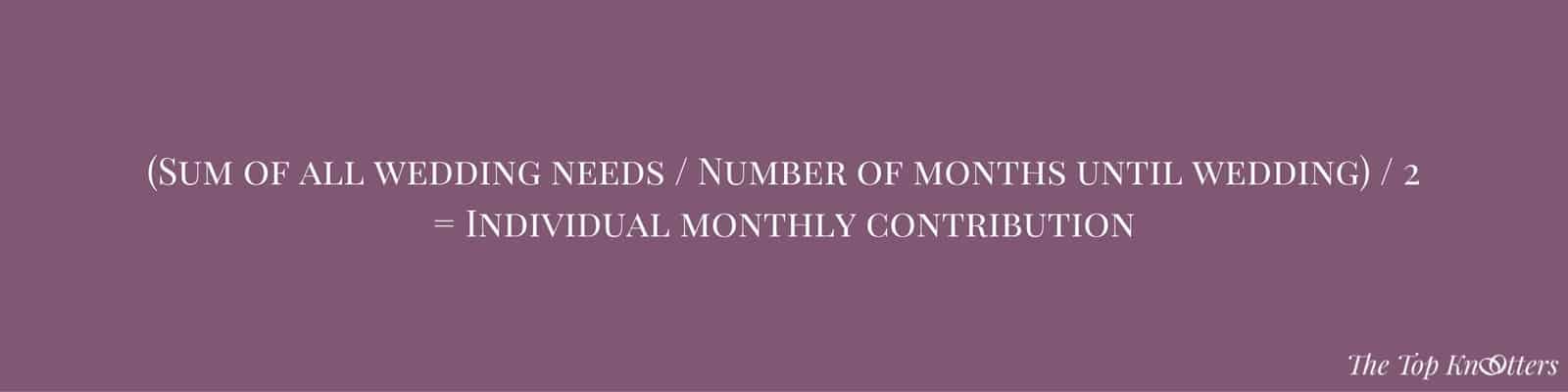 Now divide that number further by the number of months you have left until the big day, then by two. If math confuses you (like it does us), here’s the formula: